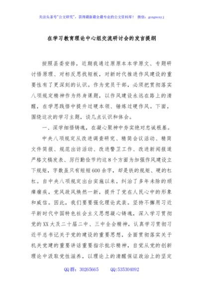 / 在学习教育理论中心组交流研讨会的发言提纲
