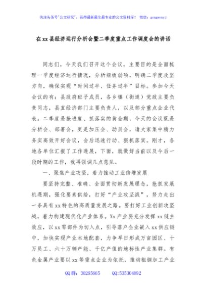 / 在xx县经济运行分析会暨二季度重点工作调度会的讲话