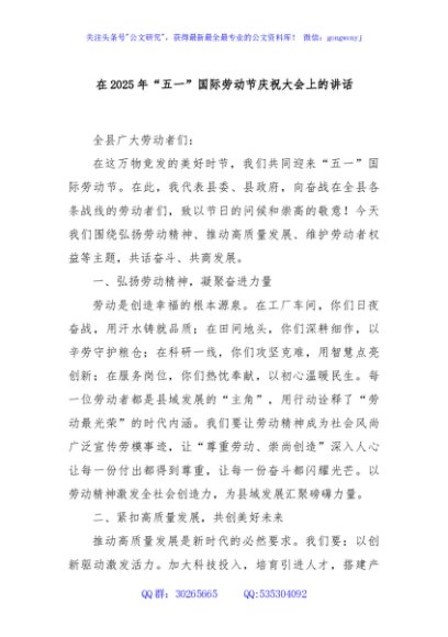/ 在2025年“五一”国际劳动节庆祝大会上的讲话