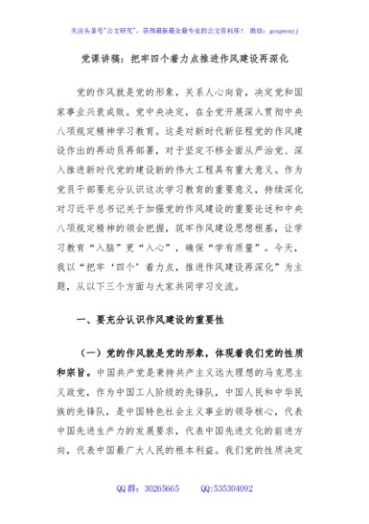 / 党课讲稿:把牢四个着力点推进作风建设再深化