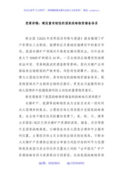 / 党课讲稿:建设富有韧性的国家战略物资储备体系