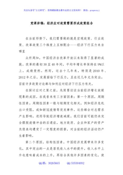 / 党课讲稿:经济应对政策需要形成政策组合