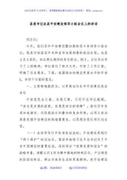/ 县委书记在县平安建设领导小组会议上的讲话