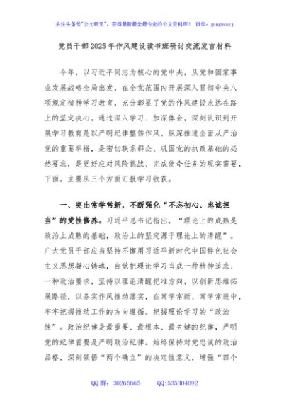 / 党员干部2025年作风建设读书班研讨交流发言材料