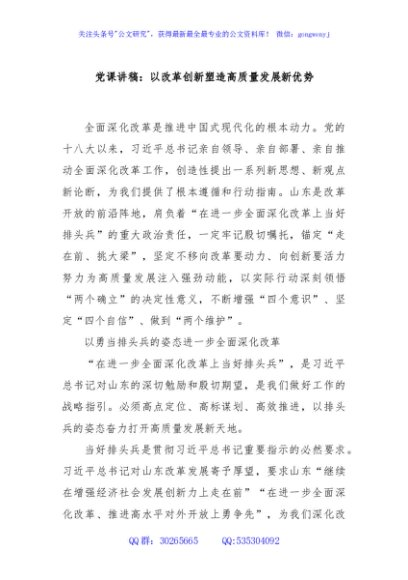/ 党课讲稿:以改革创新塑造高质量发展新优势