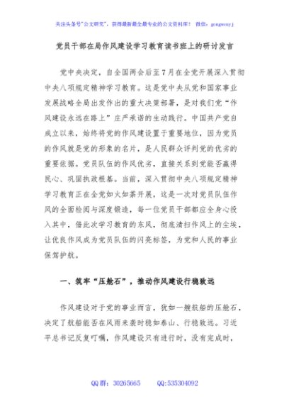 / 党员干部在局作风建设学习教育读书班上的研讨发言