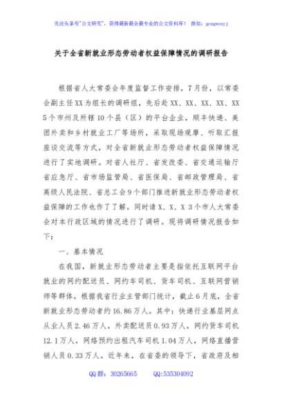 / 关于全省新就业形态劳动者权益保障情况的调研报告