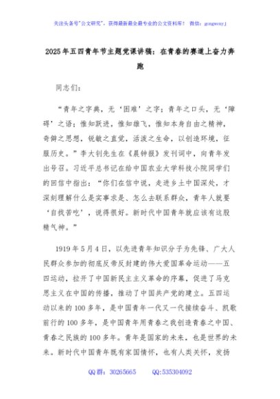 / 2025年五四青年节主题党课讲稿:在青春的赛道上奋力奔跑