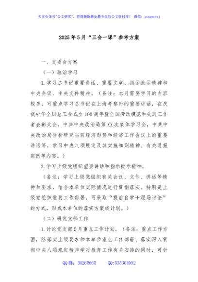 / 2025年5月“三会一课”参考方案