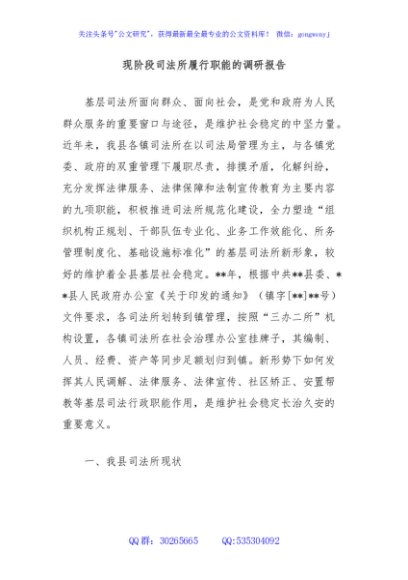 / 现阶段司法所履行职能的调研报告