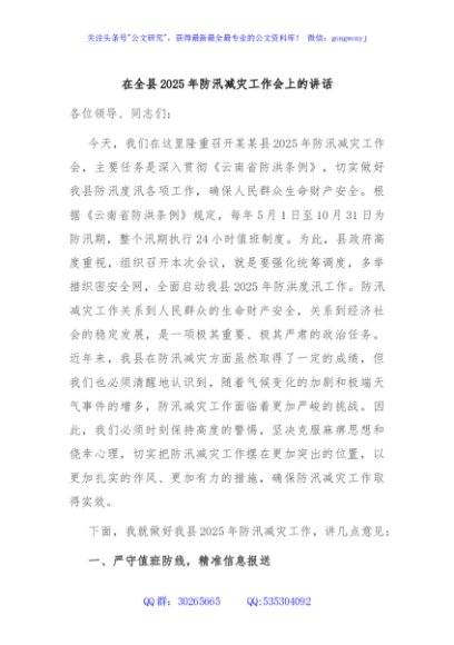 / 在全县2025年防汛减灾工作会上的讲话
