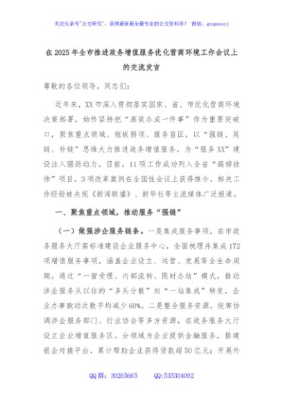 / 在2025年全市推进政务增值服务优化营商环境工作会议上的交流发言