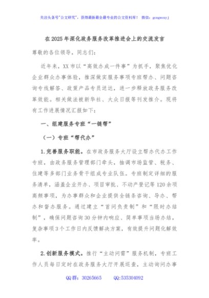 / 在2025年深化政务服务改革推进会上的交流发言