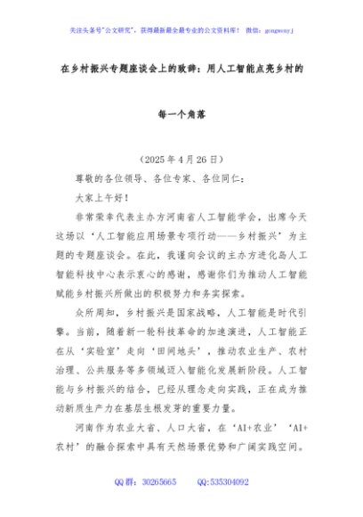 / 在乡村振兴专题座谈会上的致辞:用人工智能点亮乡村的每一个角落