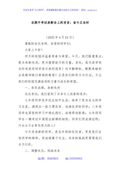 / 在期中考试表彰会上的发言:奋斗正当时