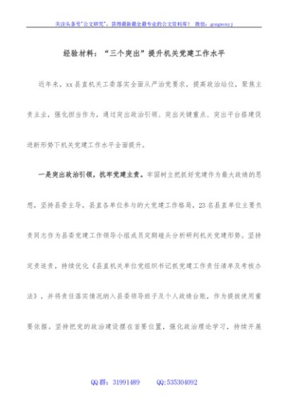 / 经验材料:“三个突出”提升机关党建工作水平