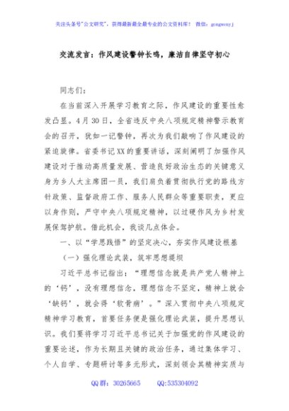 / 交流发言:作风建设警钟长鸣,廉洁自律坚守初心