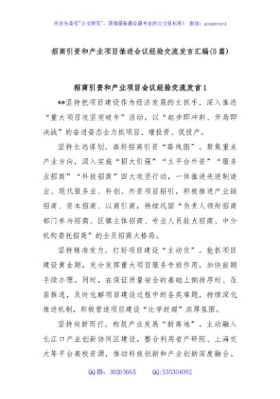 / (5篇)招商引资和产业项目推进会议经验交流发言汇编