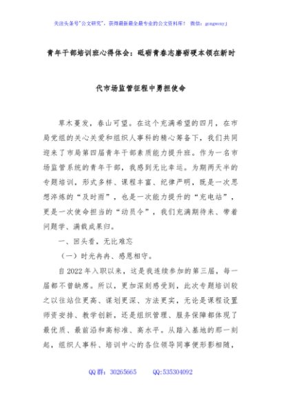 / 青年干部培训班心得体会:砥砺青春志磨砺硬本领在新时代市场监管征程中勇担使命