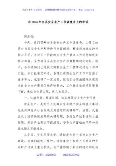 在2025年全县复工复产安全生产工作总结汇报发言材料