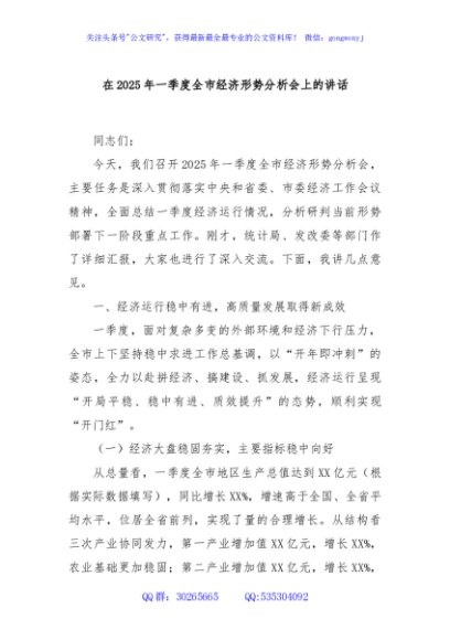 / 在2025年一季度全市经济形势分析会上的讲话