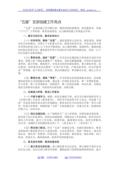 乡镇“五星”党支部创建工作亮点1300字