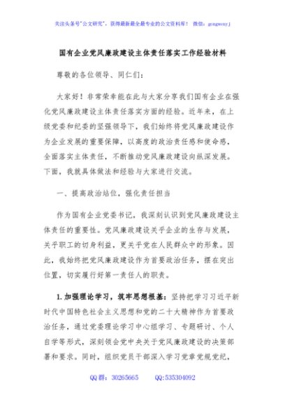 / 国有企业党风廉政建设主体责任落实工作经验材料