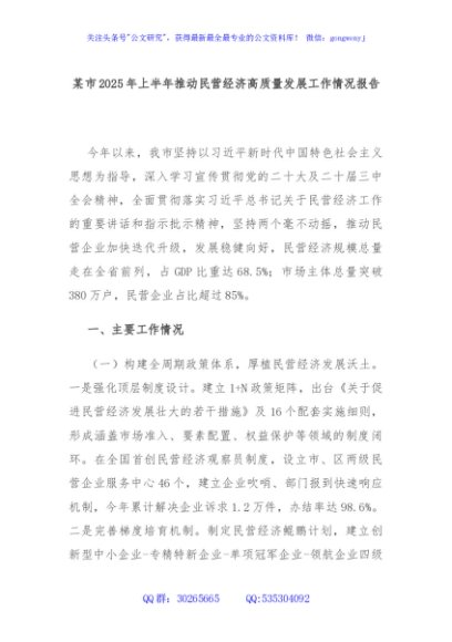 / 某市2025年上半年推动民营经济高质量发展工作情况报告