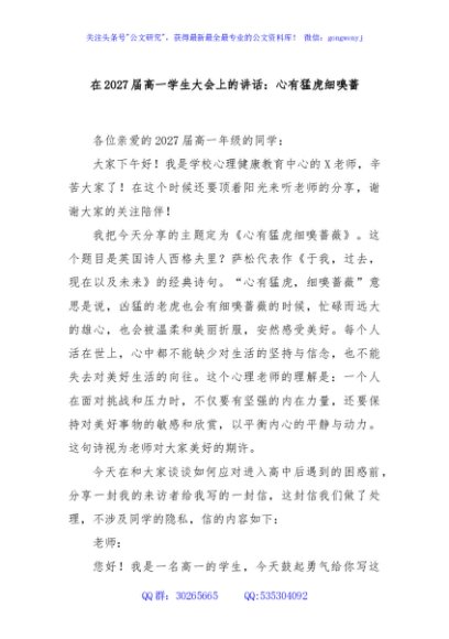 / 在2027届高一学生大会上的讲话:心有猛虎细嗅蔷