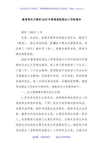 / 教育部关于做好2025年普通高校招生工作的通知