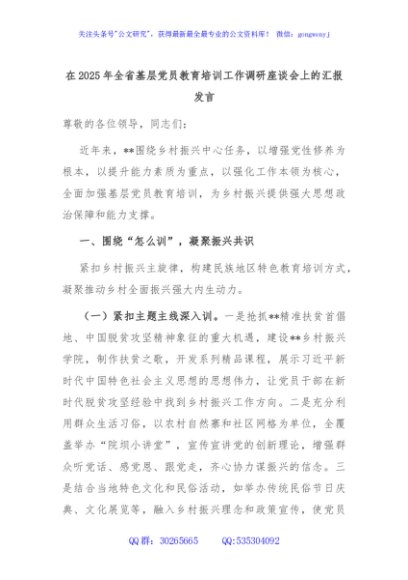 / 在2025年全省基层党员教育培训工作调研座谈会上的汇报发言