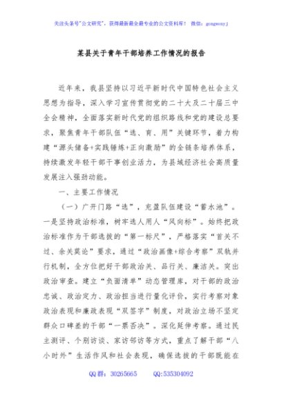 / 某县关于青年干部培养工作情况的报告