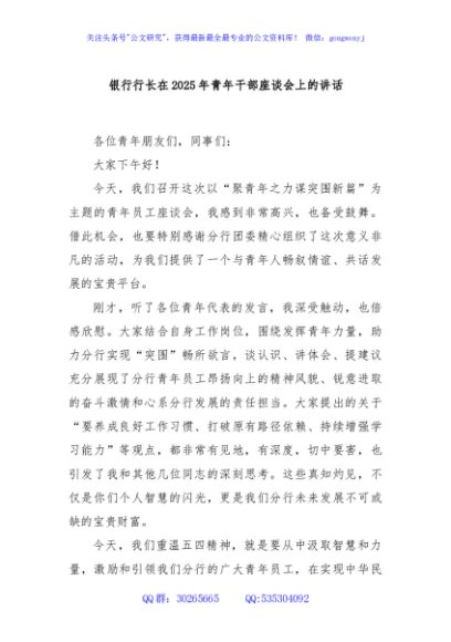 / 银行行长在2025年青年干部座谈会上的讲话