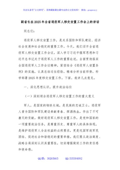 / 副省长在2025年全省退役军人移交安置工作会上的讲话