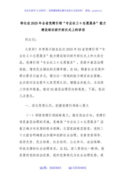/ 部长在2025年全省党建引领“专业社工+志愿服务”能力建设培训班开班仪式上的讲话