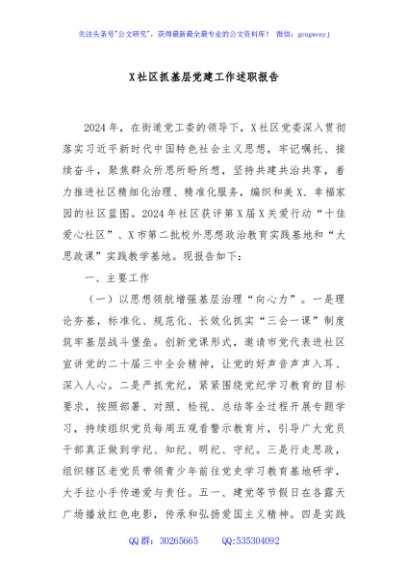 / X社区抓基层党建工作述职报告