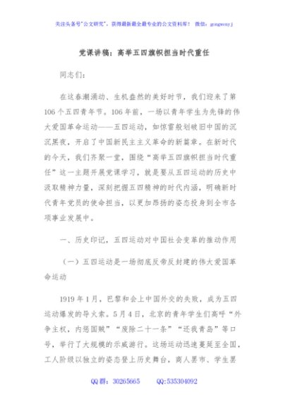 / 党课讲稿:高举五四旗帜担当时代重任