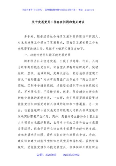 / 关于发展党员工作存在问题和意见建议