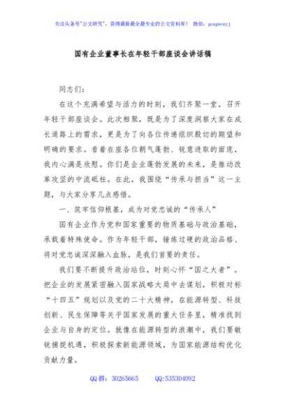 / 国有企业董事长在年轻干部座谈会讲话稿