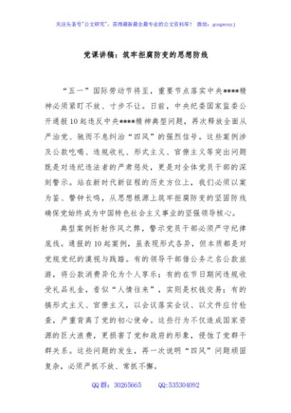 / 党课讲稿:筑牢拒腐防变的思想防线
