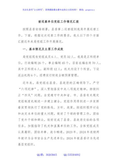 / 被巡察单位党组工作情况汇报