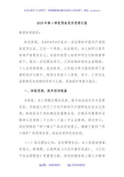 / 2025年第二季度预备党员思想汇报