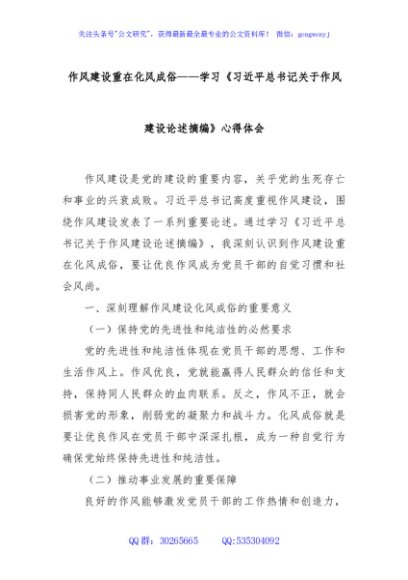/ 作风建设重在化风成俗——学习《习近平总书记关于作风建设论述摘编》心得体会