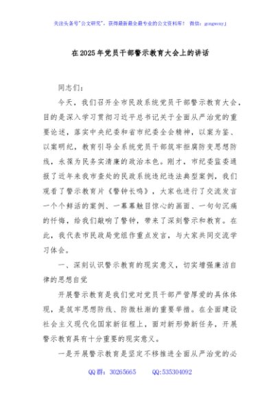 / 在2025年党员干部警示教育大会上的讲话