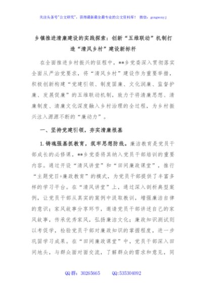/ 乡镇推进清廉建设的实践探索:创新“五维联动”机制打造“清风乡村”建设新标杆