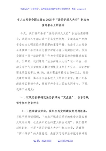 / 省人大常委会副主任在2025年“法治护绿人大行”执法检查部署会上的讲话