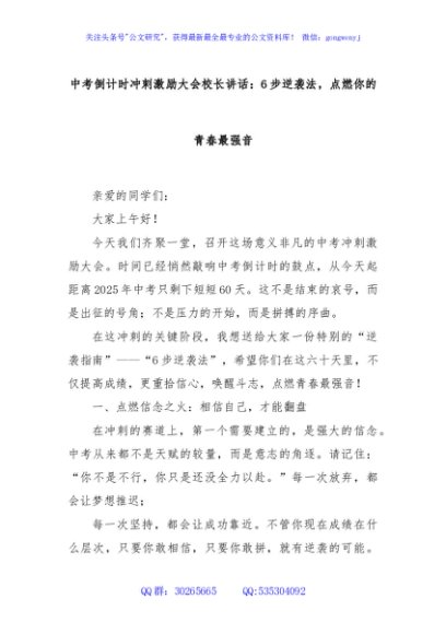 / 中考倒计时冲刺激励大会校长讲话:6步逆袭法,点燃你的青春最强音
