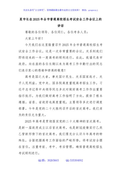 / 某市长在2025年全市普通高校招生考试安全工作会议上的讲话