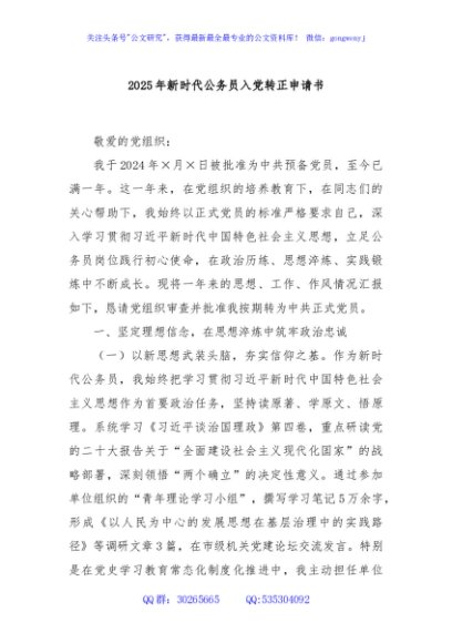 / 2025年新时代公务员入党转正申请书