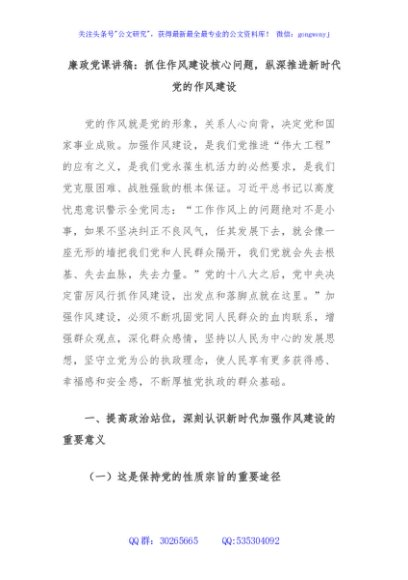 廉政党课讲稿:抓住作风建设核心问题,纵深推进新时代党的作风建设